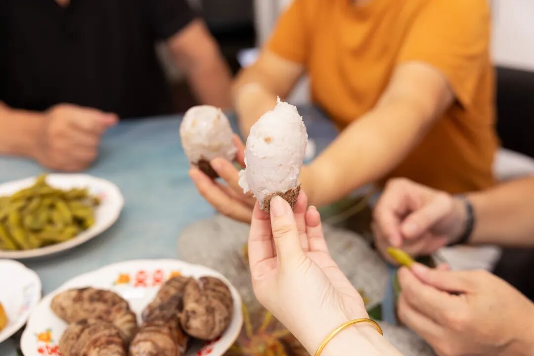 小小的毛豆和芋艿,瞬间将时光拉回数十年前。彼时,邻里间没有厚重的围墙,家家户户的门敞开着,孩子们可以随意串门,谁家煮了好吃的,左邻右舍都能尝到。今天这老宅里的美食,正是这种亲密无间的邻里关系的缩影。张家送来自家种的毛豆,李家端来精心调味的芋艿,大家围坐分享,谈论着过往的趣事,也感慨着时代的变迁。
