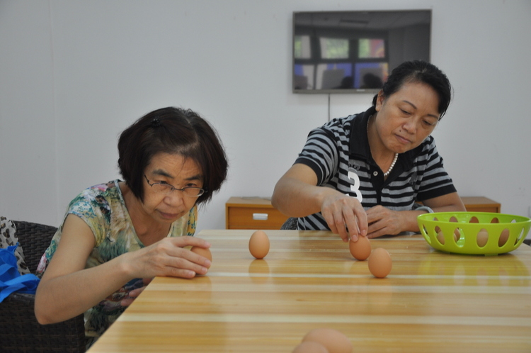 活动当天,不少居民带着孩子早早地来到了盘古天地筹建组的活动室,孩子们准备了不少鸡蛋,居民们则是准备了秋天的当季食品,准备为大家现场制作。“竖蛋”顾名思义,就是在桌上把它竖起来,这个游戏看似简单,实则需要不少技巧。孩子们聚在桌边,拿起鸡蛋,凝神静气,轻手轻脚地把它竖直放置在桌面上,这个过程需要两只手同时进行,稍不留神,鸡蛋就会倒下。小朋友们参与热情高涨,不少大人也纷纷拿起鸡蛋跃跃欲试。这个看似不可能完成的任务,不少人都完成了,居民刘翠红说:“一开始我觉得要把一个鸡蛋立起来根本不可能。但是自己通过观察、动手了以后发现鸡蛋的表面其实是高低不平的,关键是找到一个合适的角度,就能使鸡蛋竖立起来了。成功了以后,觉得这个习俗还挺好玩的。”